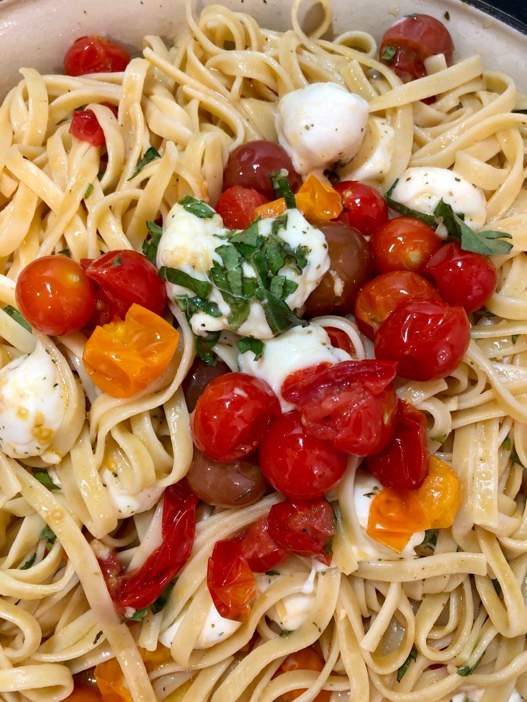 I realized the blog concept “eating with Josh” should also document cooking with him, which he’s taught me to do over the years, so tonight I made pasta with cherry tomatoes & fresh basil he picked in the garden (fresh mozzarella to boot). The whole family enjoyed. Bon appétit 🌿